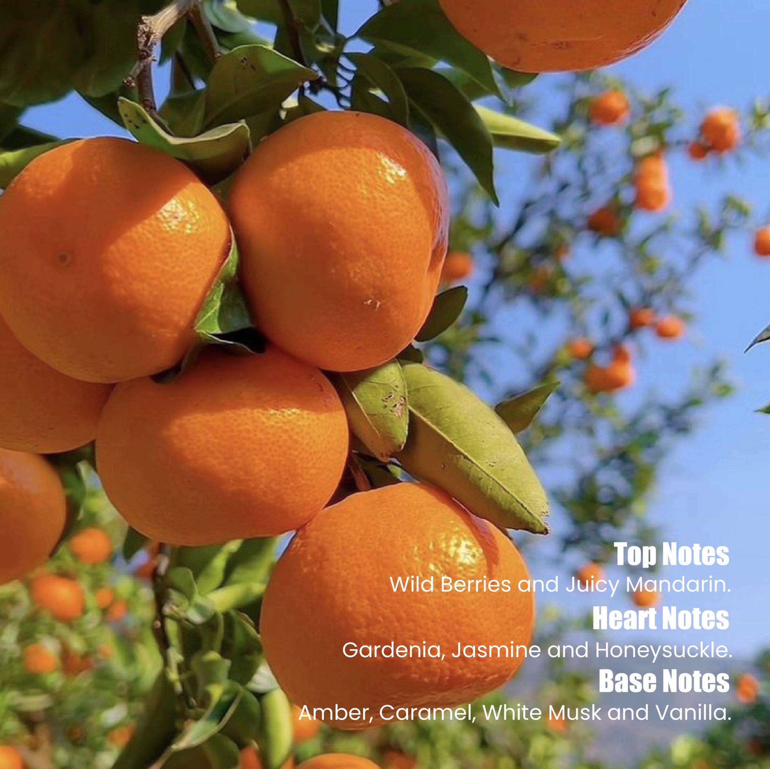 A sparkling burst of wild berries and juicy mandarin opens the fragrance with a flirty freshness. At its heart, a bouquet of gardenia, honeysuckle, and jasmine adds creamy softness and floral allure. As it settles, warm notes of amber, caramel, vanilla, and sandalwood wrap the skin in a sensual, addictive glow.